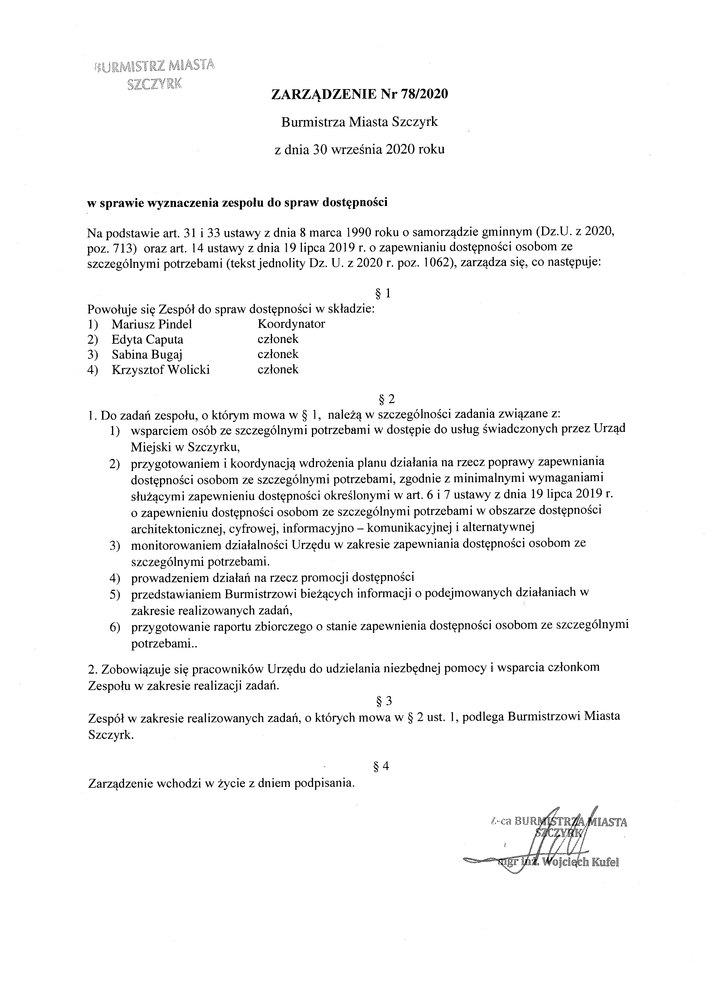 w sprawie wyznaczenia zespołu do spraw dostępności